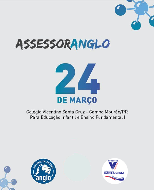 Neste sábado 24/03, o Colégio Vicentino Santa Cruz, sediará o 3º ASSESSORANGLO, evento de formação continuada promovido pelo Sistema Anglo de Ensino em pareceria com o Colégio.
